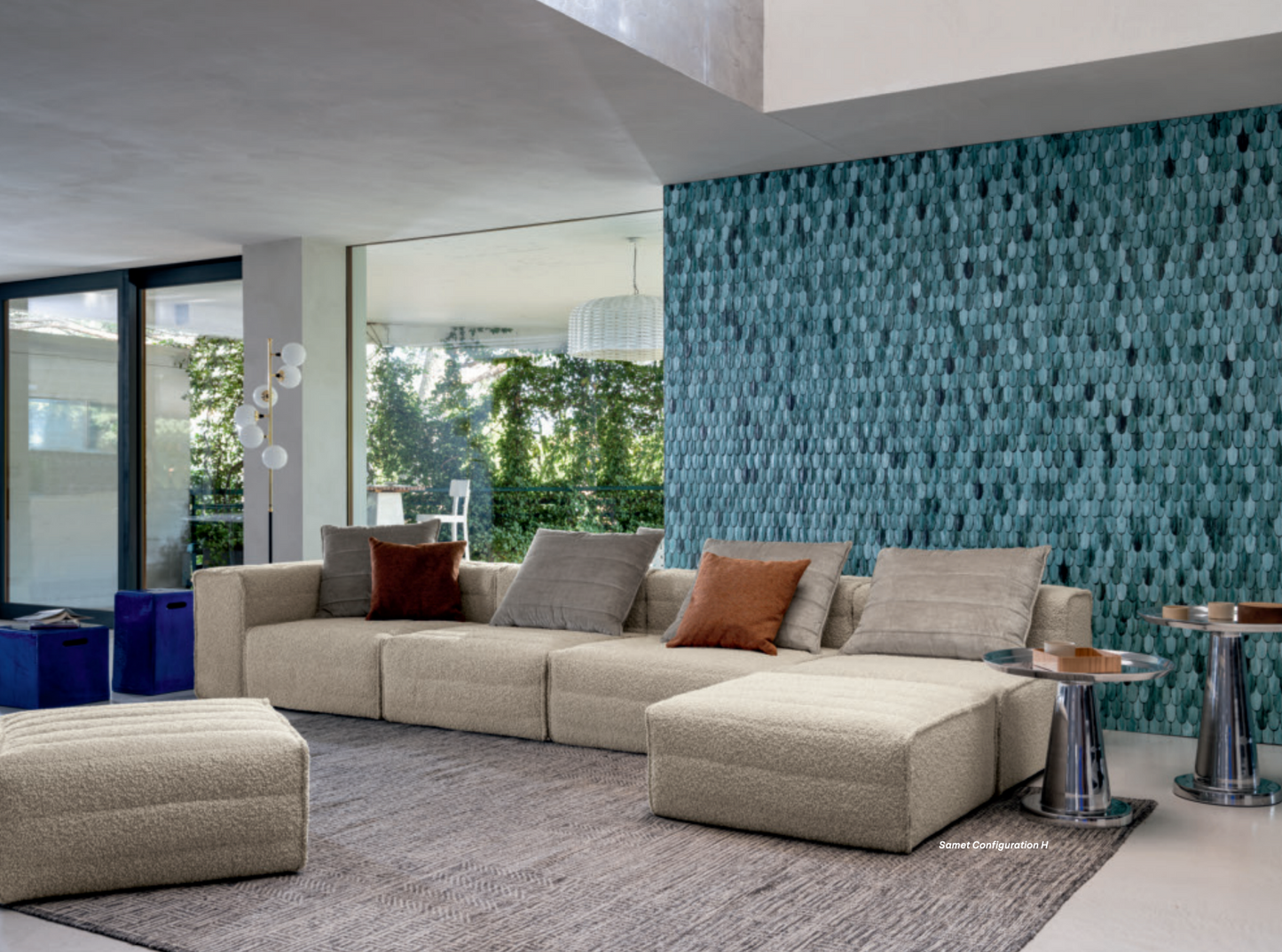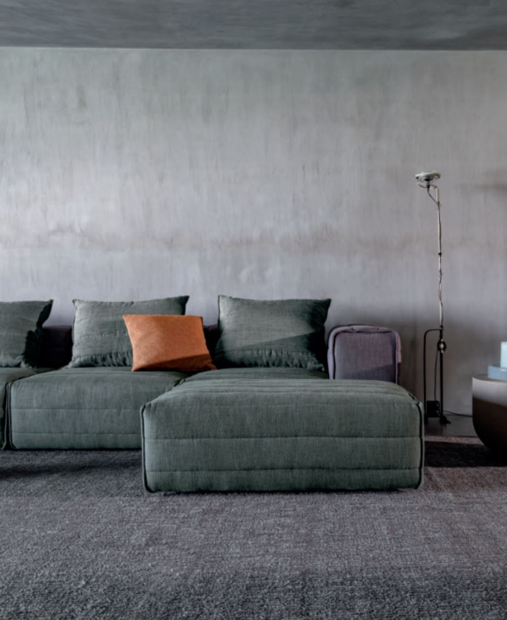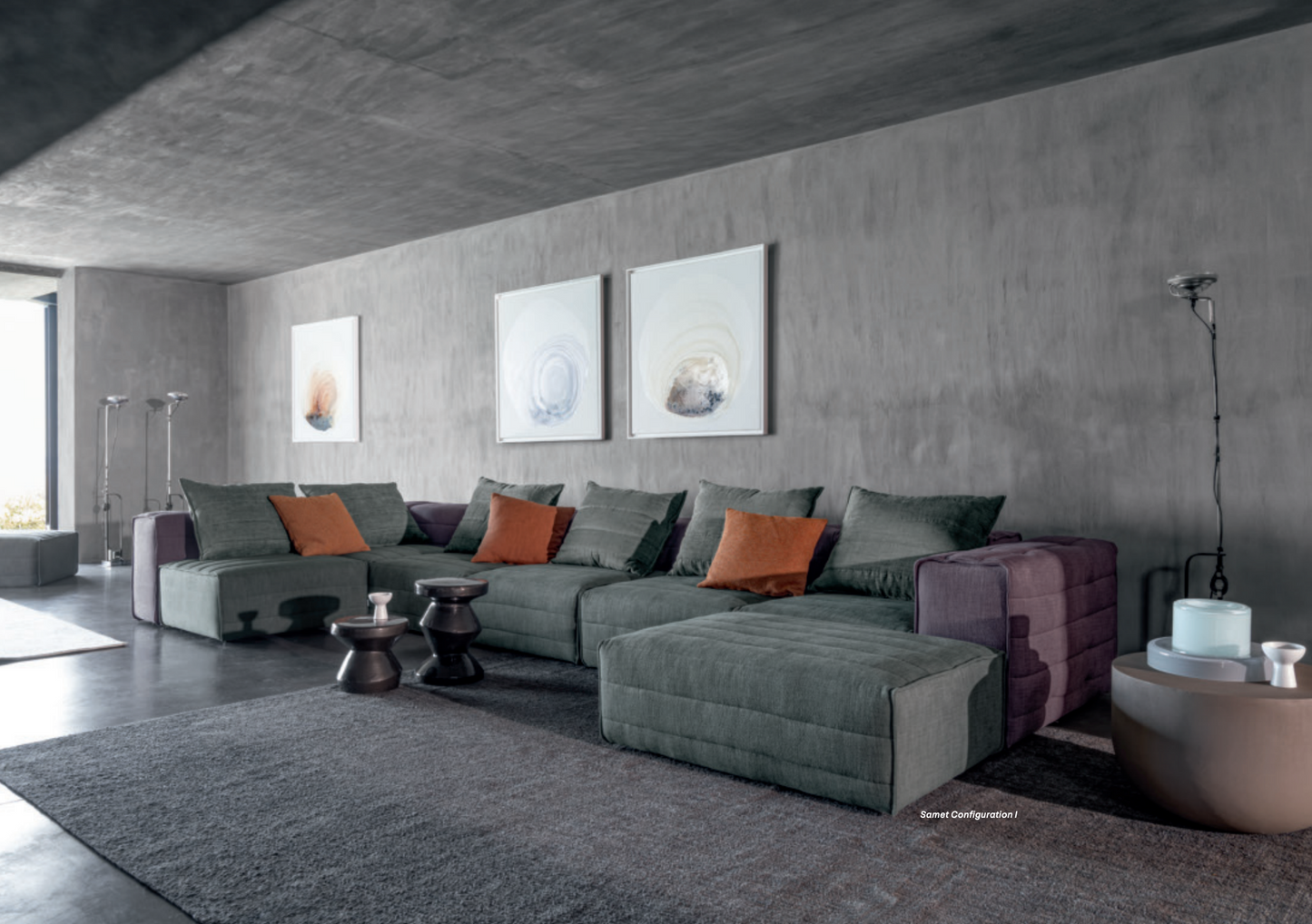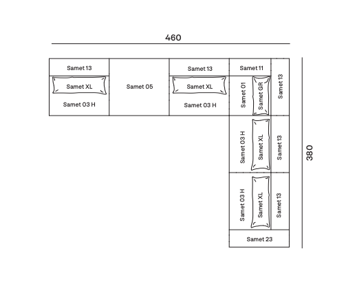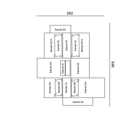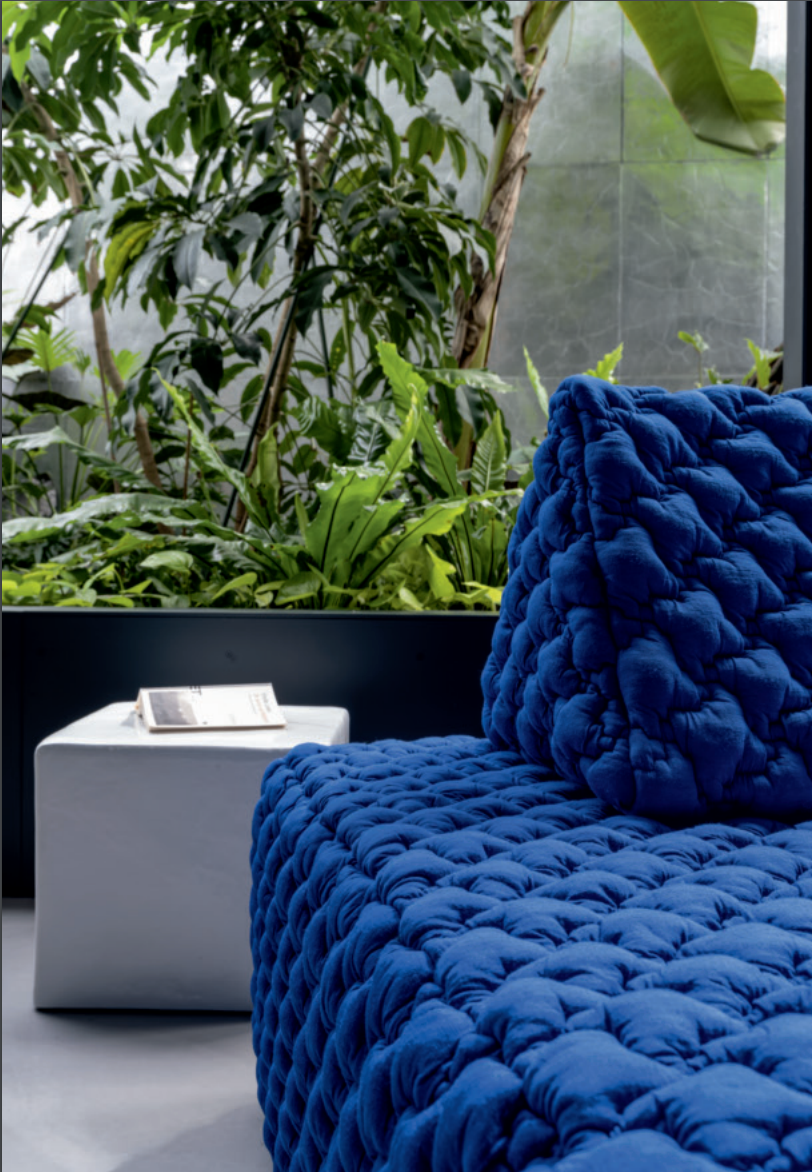 Samet is a modular sofa without rules, a multifunctional and configurable product that places the person as an active subject in the composition of their own space, encouraging them to experiment with new forms of use. Available in two variants, a classic high version and a floor-standing version that is even closer to the Thai imagery from which the design was inspired, it is presented in two compositions designed to create true islands of relaxation, one more articulated defined by overlapping shapes, the other instead more linear. Cosy and hospitable seats are juxtaposed with each other in regular and soft geometries, a dynamic design to create multiple types of more or less informal seating. Details, stitching and matelassé enrich a simple modularity that creates infinite compositions with a timeless aesthetic, from the most classic sofa to the most multifaceted, from the tidiest to the most disjointed.