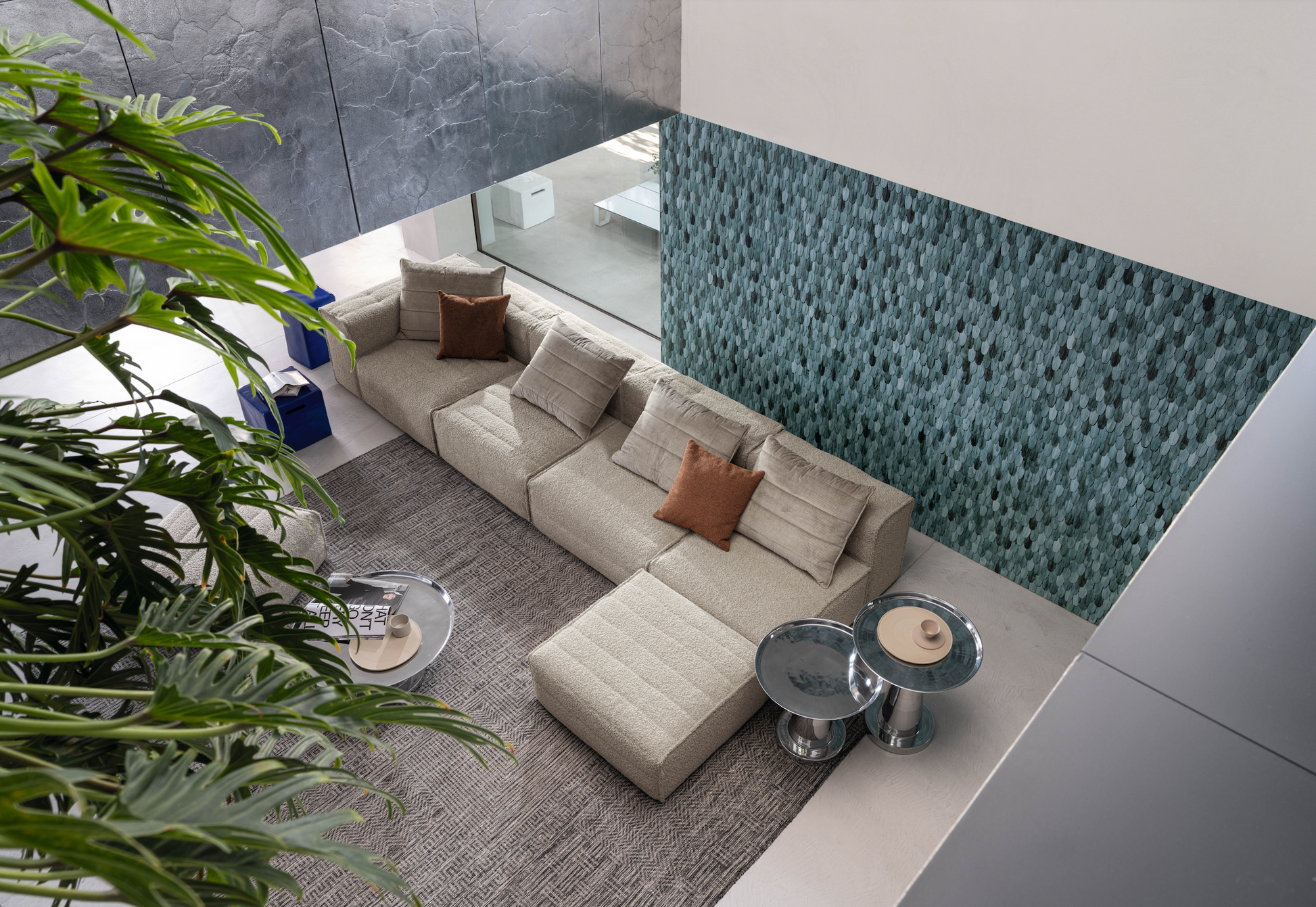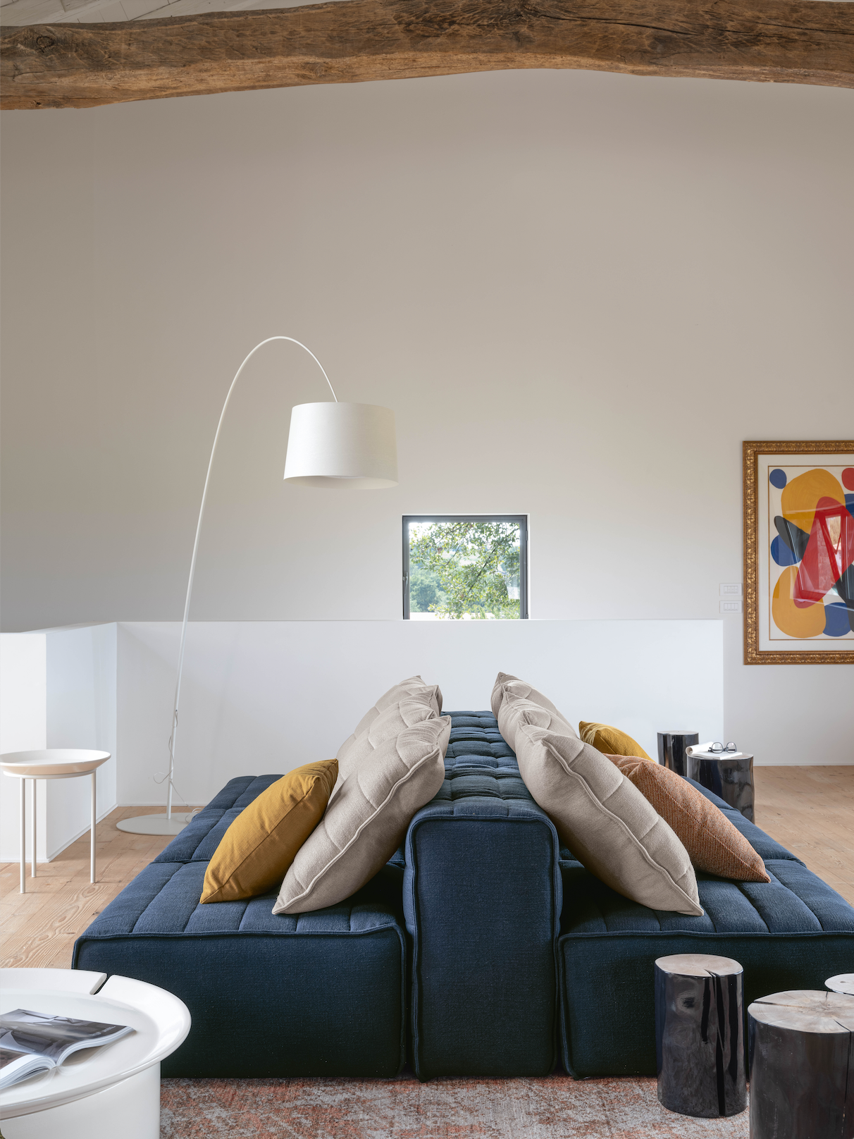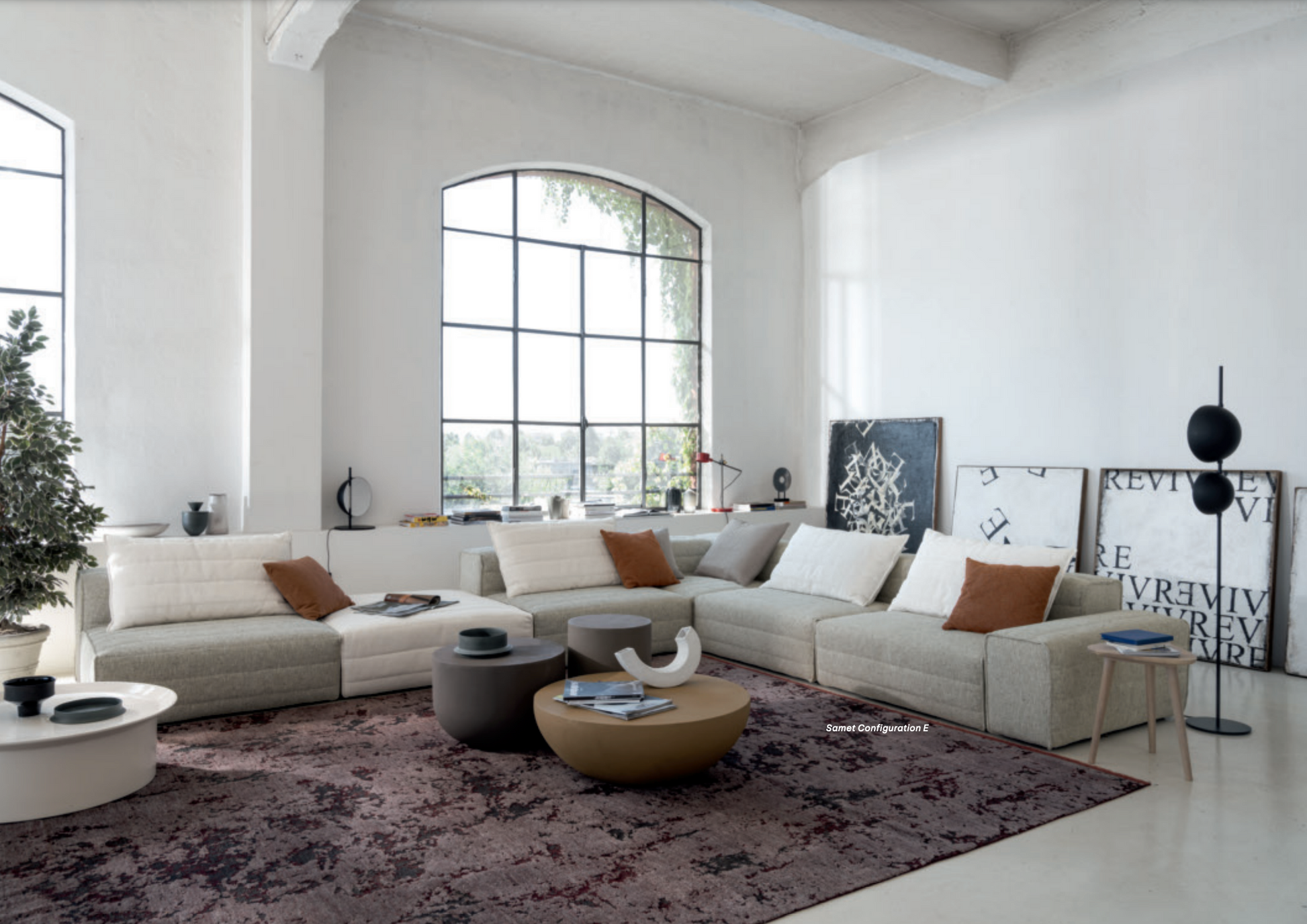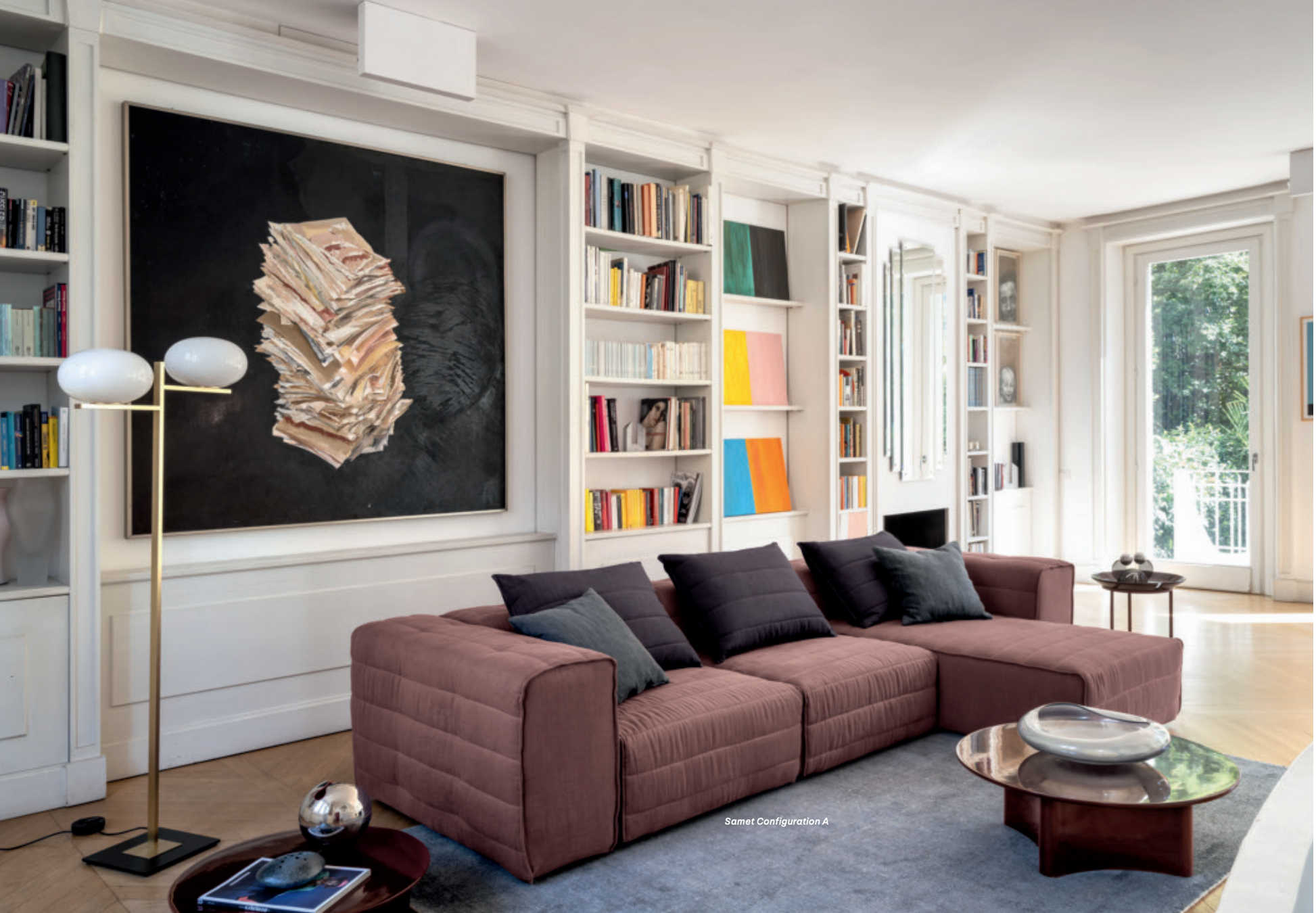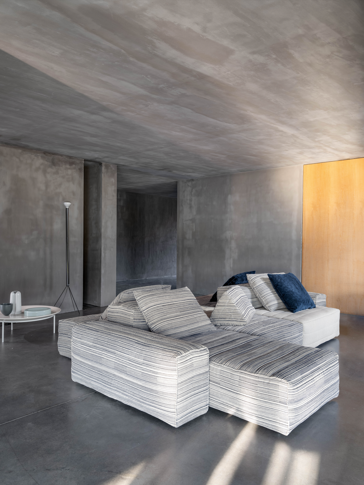 Samet is a modular sofa without rules, a multifunctional and configurable product that places the person as an active subject in the composition of their own space, encouraging them to experiment with new forms of use. Available in two variants, a classic high version and a floor-standing version that is even closer to the Thai imagery from which the design was inspired, it is presented in two compositions designed to create true islands of relaxation, one more articulated defined by overlapping shapes, the other instead more linear. Cosy and hospitable seats are juxtaposed with each other in regular and soft geometries, a dynamic design to create multiple types of more or less informal seating. Details, stitching and matelassé enrich a simple modularity that creates infinite compositions with a timeless aesthetic, from the most classic sofa to the most multifaceted, from the tidiest to the most disjointed.