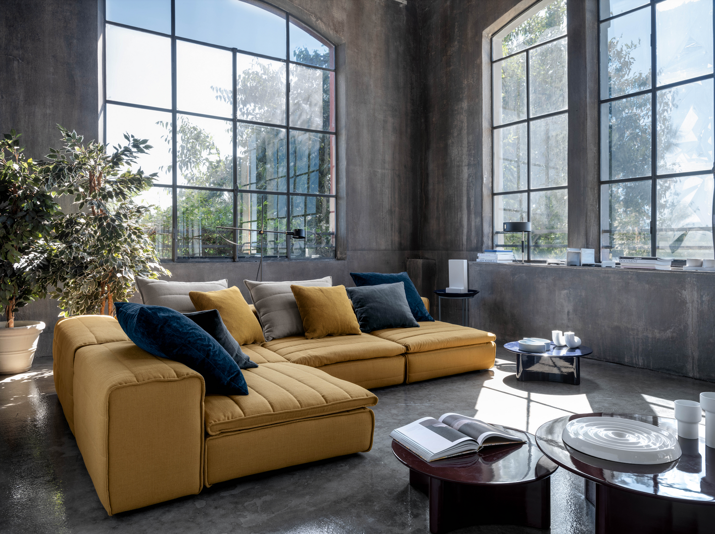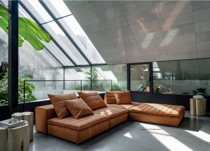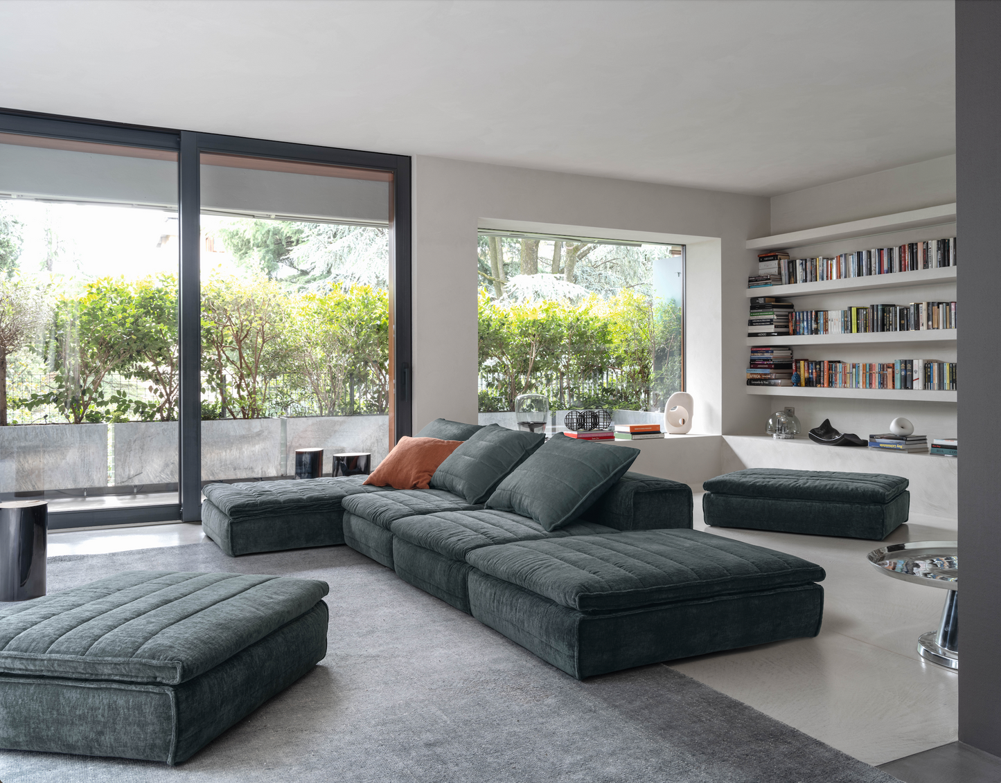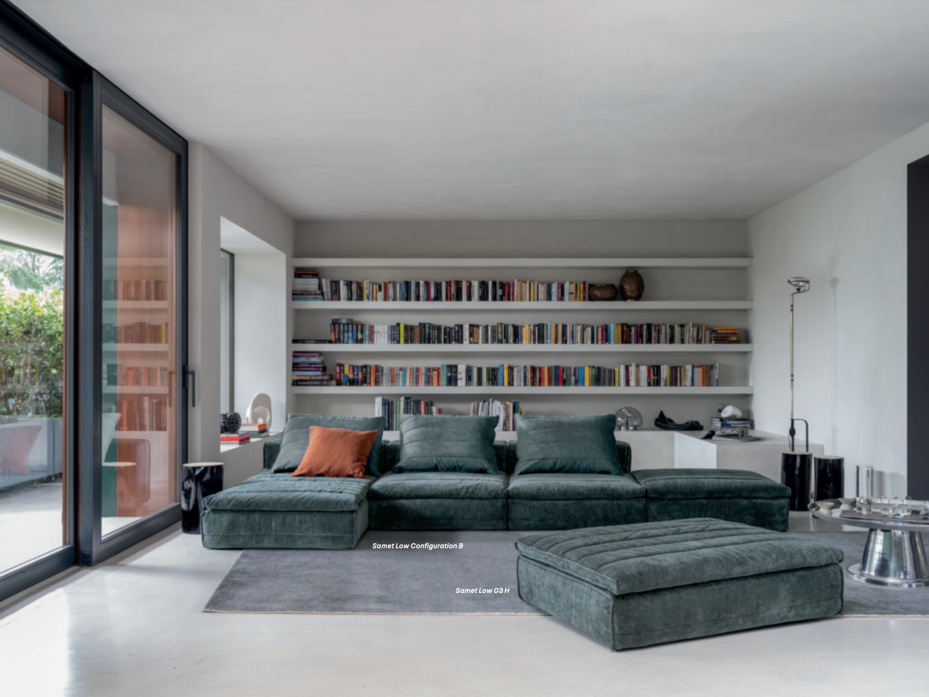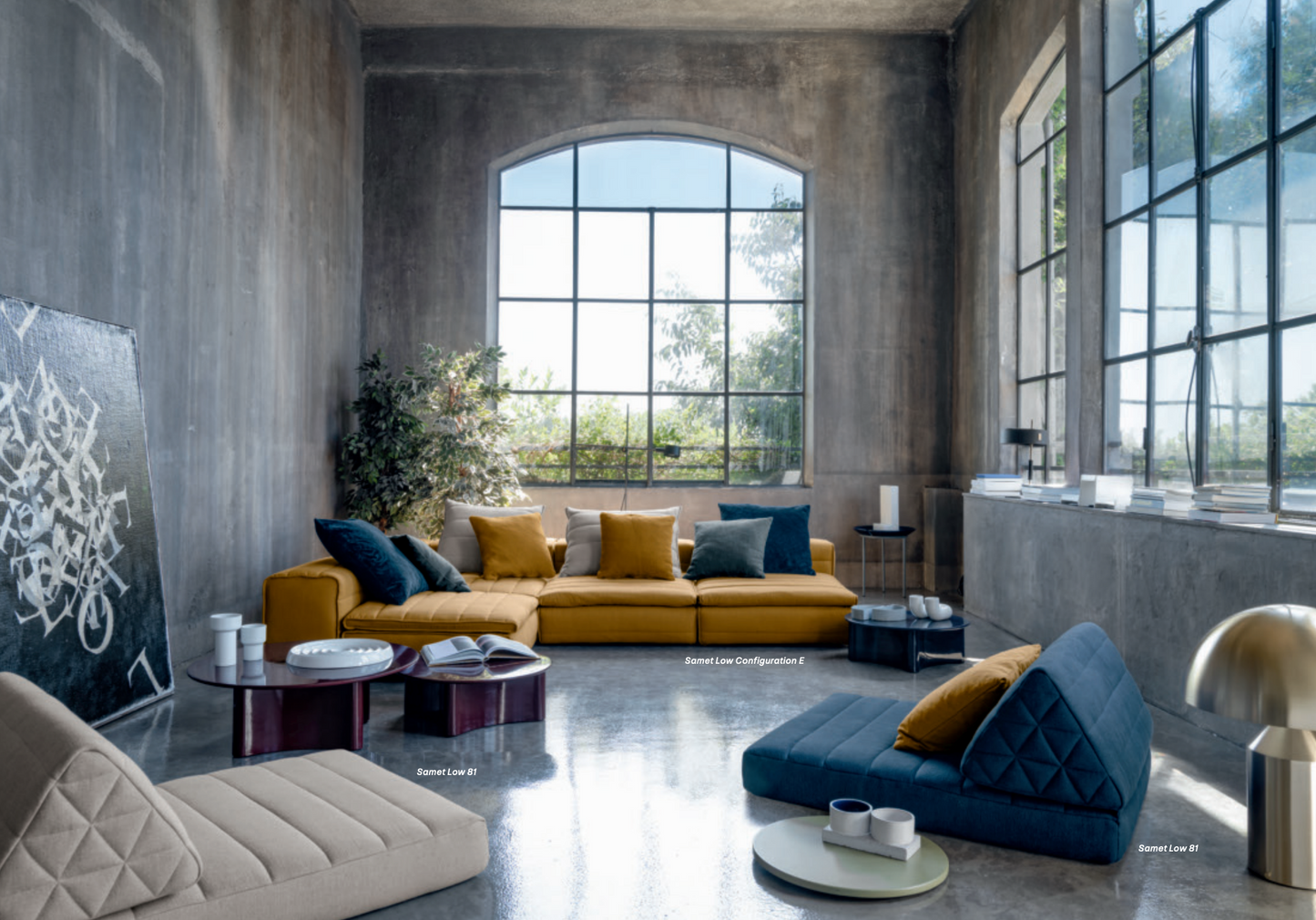 Samet is a modular sofa without rules, a multifunctional and configurable product that places the person as an active subject in the composition of their own space, encouraging them to experiment with new forms of use. Available in two variants, a classic high version and a floor-standing version that is even closer to the Thai imagery from which the design was inspired, it is presented in two compositions designed to create true islands of relaxation, one more articulated defined by overlapping shapes, the other instead more linear. Cosy and hospitable seats are juxtaposed with each other in regular and soft geometries, a dynamic design to create multiple types of more or less informal seating. Details, stitching and matelassé enrich a simple modularity that creates infinite compositions with a timeless aesthetic, from the most classic sofa to the most multifaceted, from the tidiest to the most disjointed.