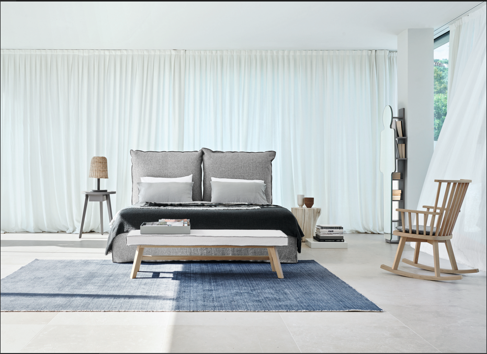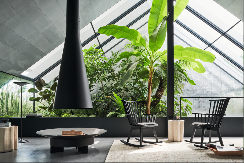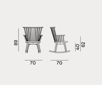 Rocking chair in wood, INOUT 709 is characterised by a high backrest with visible slats: it is made of oiled Iroko, particularly durable wood because it is naturally resistant to water and moisture. The contrast between the solidity of the wide slats and the softness of the removable loose cushions in water-repellent polyurethane foam, give character to this piece of furniture.