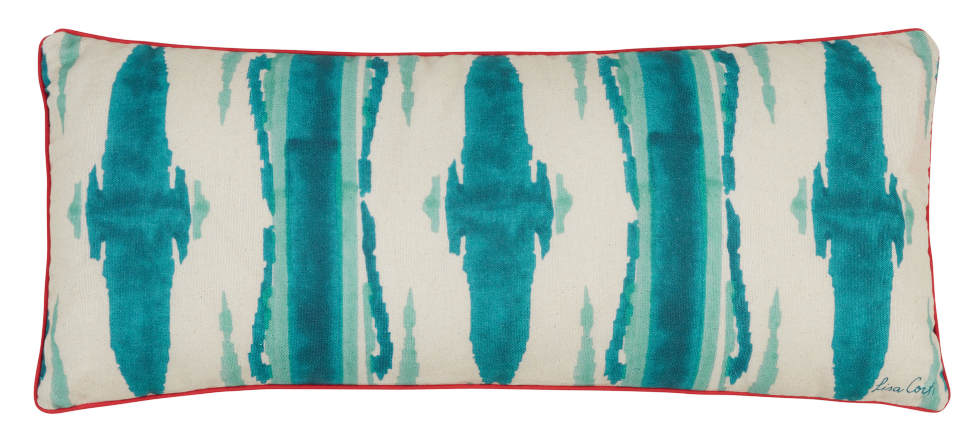 The Flame Home Collection is the first Lisa Corti collection to be entirely Made in Milan. With its eye-catching pattern inspired by Mallorca's Balearic "Telas de lenguas" and traditional Ikat fabrics, the Flame design's vital simplicity brings an explosion of colour to every occasion. It's all in the details: adding a cool touch of color to a sofa, bed or deckchair, chic tones of blue-green against a fresh white background make this new cushion size the ideal compliment to your space. Mix or match the Flame colour-ways, including Blue Pervinch, Pink Laquered Red and Peacock Veronese, or pair them with other Lisa Corti designs for an eclectic take on sophisticated style.