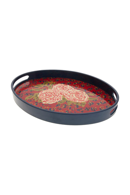 The oval tray 39x24cm is made in lacquered wooden and waterborne coating exclusively handcrafted in Vietnam. The trays are adorned with Lisa Corti’s iconic floral patterns, set against a backdrop of dynamic contrasts and vivid colours.