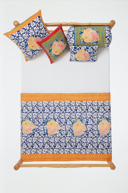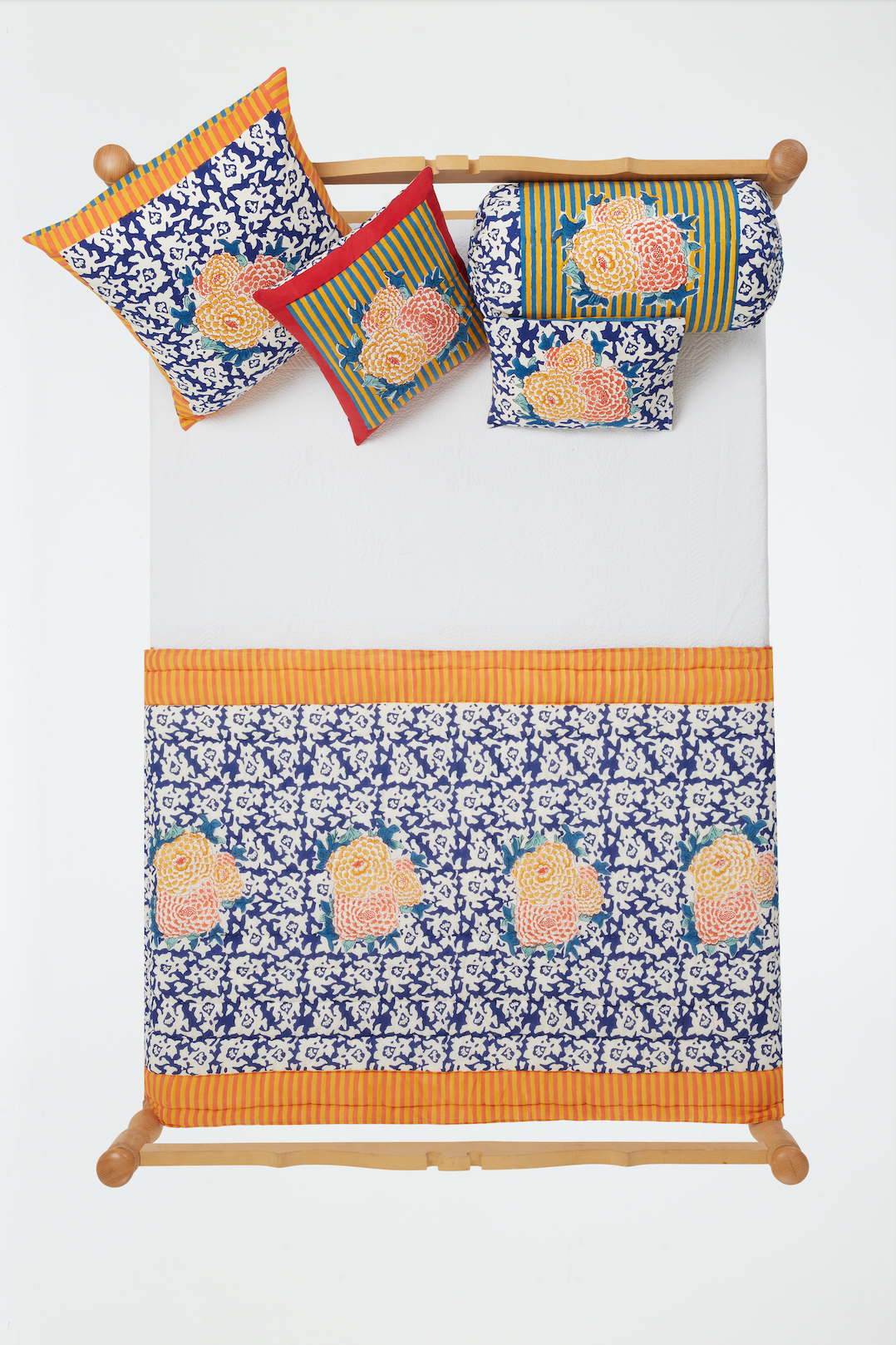 A cushion can change the mood of an entire room, and a handcrafted blockprint bolster cushion in cotton all the more so. Set on a daybed, or a garden bench, this typically oriental shape adds both a dash of exotic elegance to an interior and unequalled comfort to moments of leisure.