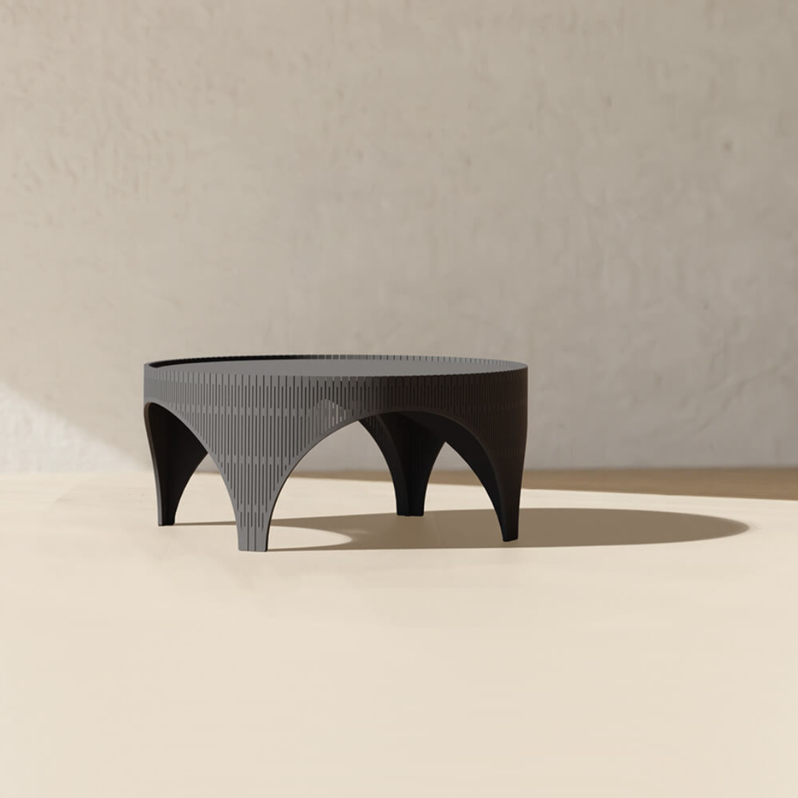 Named Ludia in homage to the gladiators, this coffee table by Belgian designer Frederik Delbart is inspired by the majestic arches of the Colosseum. With architectural audacity, it rises with remarkable elegance. Its gravity-defying base seems as supple as a ribbon, while its precise sculpting retains an astonishing robustness. Every curve and cut of Ludia reflects this duality between strength and lightness.