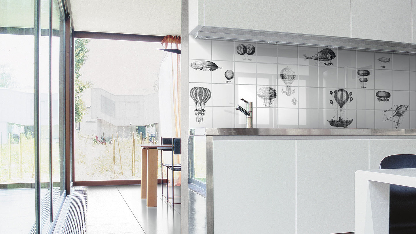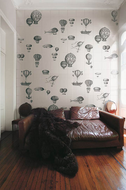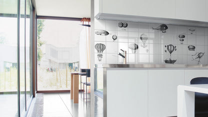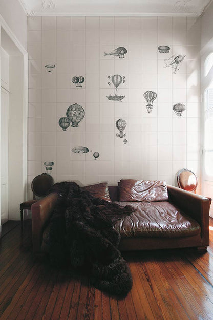 Macchine volanti by Piero Fornasetti hand painted ceramic tiles - Black&White