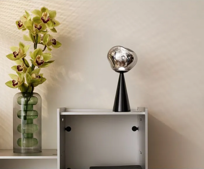 Melt Portable LED expands the collection, offering the same mesmerizing hot-blown glass effect within a portable design. Melt is evocative of molten glass, the interior of a melting glacier or images of deep space. Melt Portable LED is available in a wide range of finishes and offers up to 10 hours of battery life.