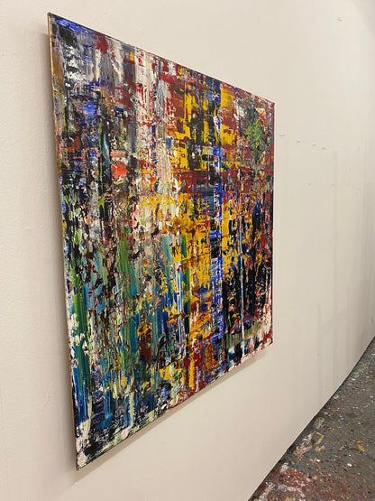 Silvio Bomio is a Swiss artist whose works have been presented in solo exhibitions at a national level. The evolution and artistic growth follow a shared path guided by Maestro Nando Snozzi. The expressive technique is characterized by both a chromatic stratification and the removal of matter where dynamic movements merge into an abstract composition. Using colors and techniques in complex compositions, the artist explores the material presence of color and its expressiveness. The works are created mainly with oil colors and acrylic on masonite.