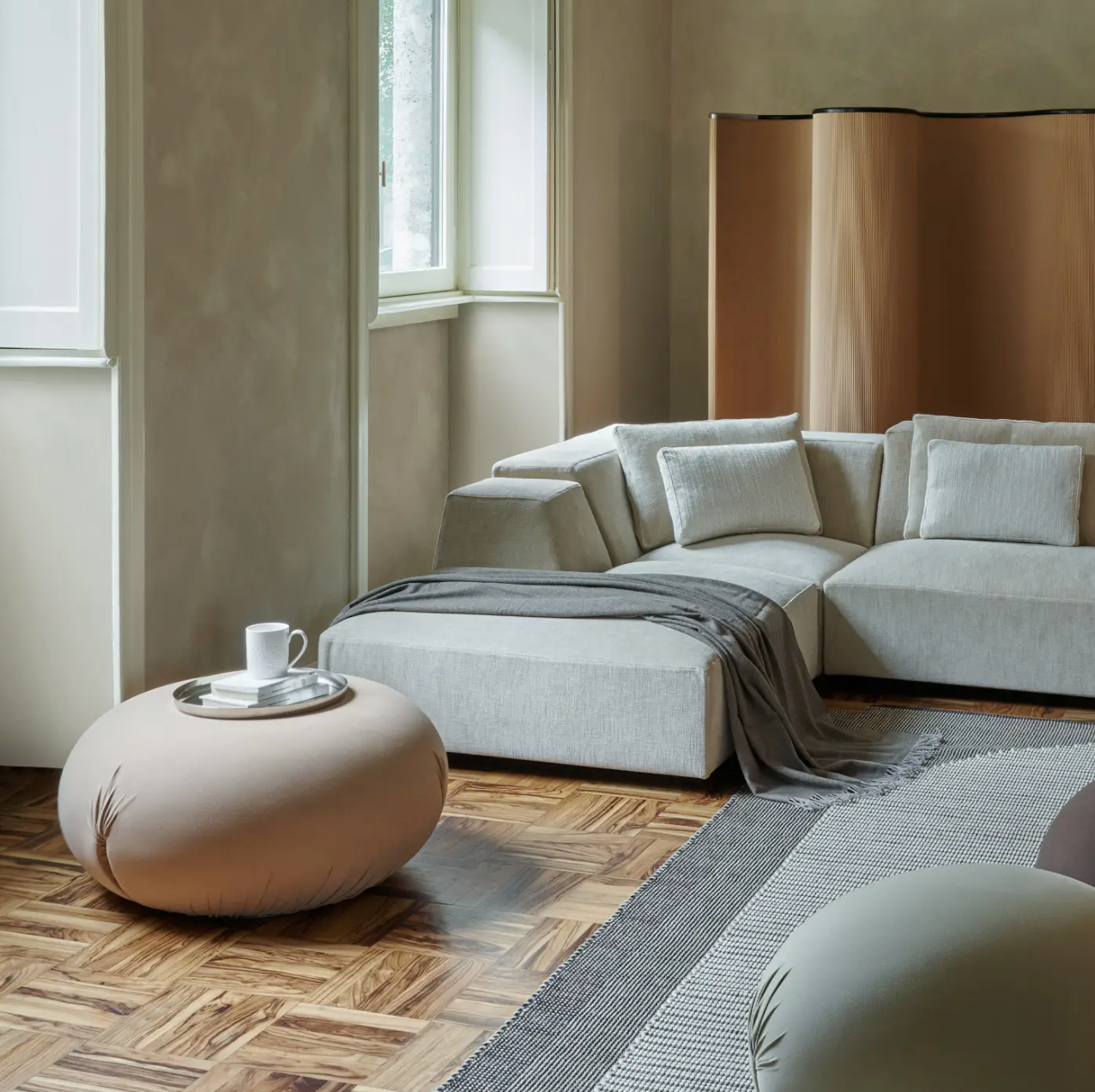 Tatone is a family of poufs or footrests with a rigid base and different shapes, made of flexible material. The removable cover, easy to replace, is made of bi-elastic fabric, available in many colours.