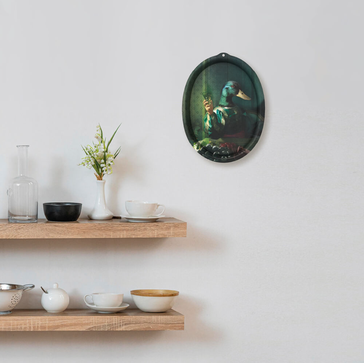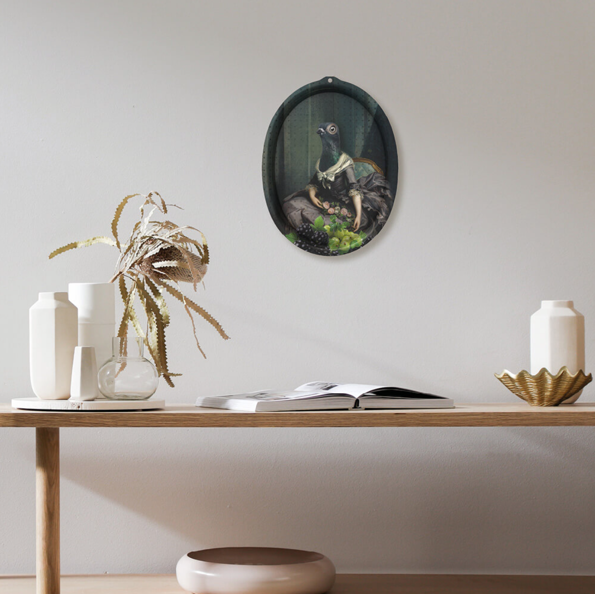 "Le Boudoir", a series of trays in the shape of medallions, gives an amused portrayal of day birds, avid intellectuals and courteous babblers, who filled the social salons of the 19th century. Small trays to be used to serve the guests, they can then be displayed freely on a wall as a pictorial work, a mythological painting.